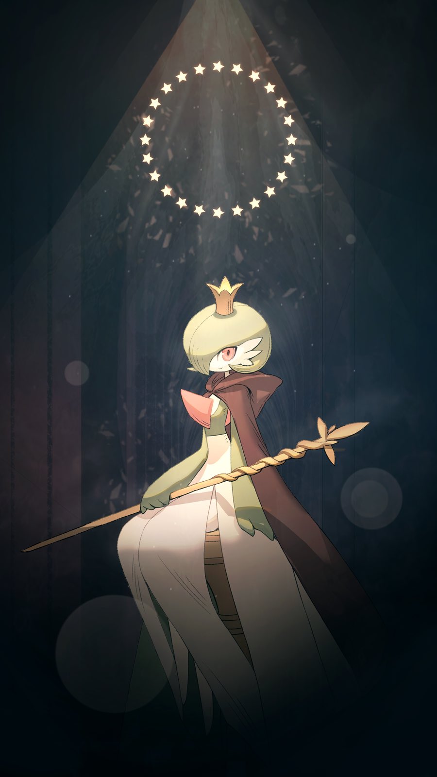 1othercapeclosed mouthcolored skincrowngen 3 pokemongreen hairgreen skinhair over one eyeholdingholding stafflooking at viewermulticolored skinpokemon (creature)pokemon focusred eyessittingsolostaffstar (symbol)topple33two-tone skinwhite skin