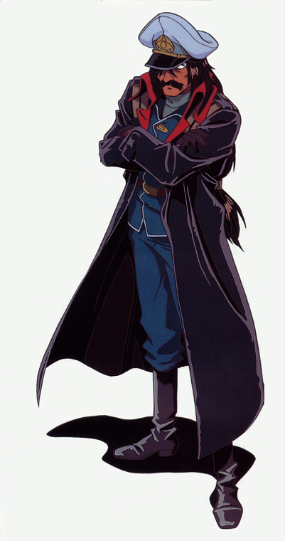 1990s (style)1boycaptain uniformfacial hairfull bodyhatlong hairmale focusmilitarymilitary uniformmustachepeaked capretro artstylesimple backgroundsolowhite background