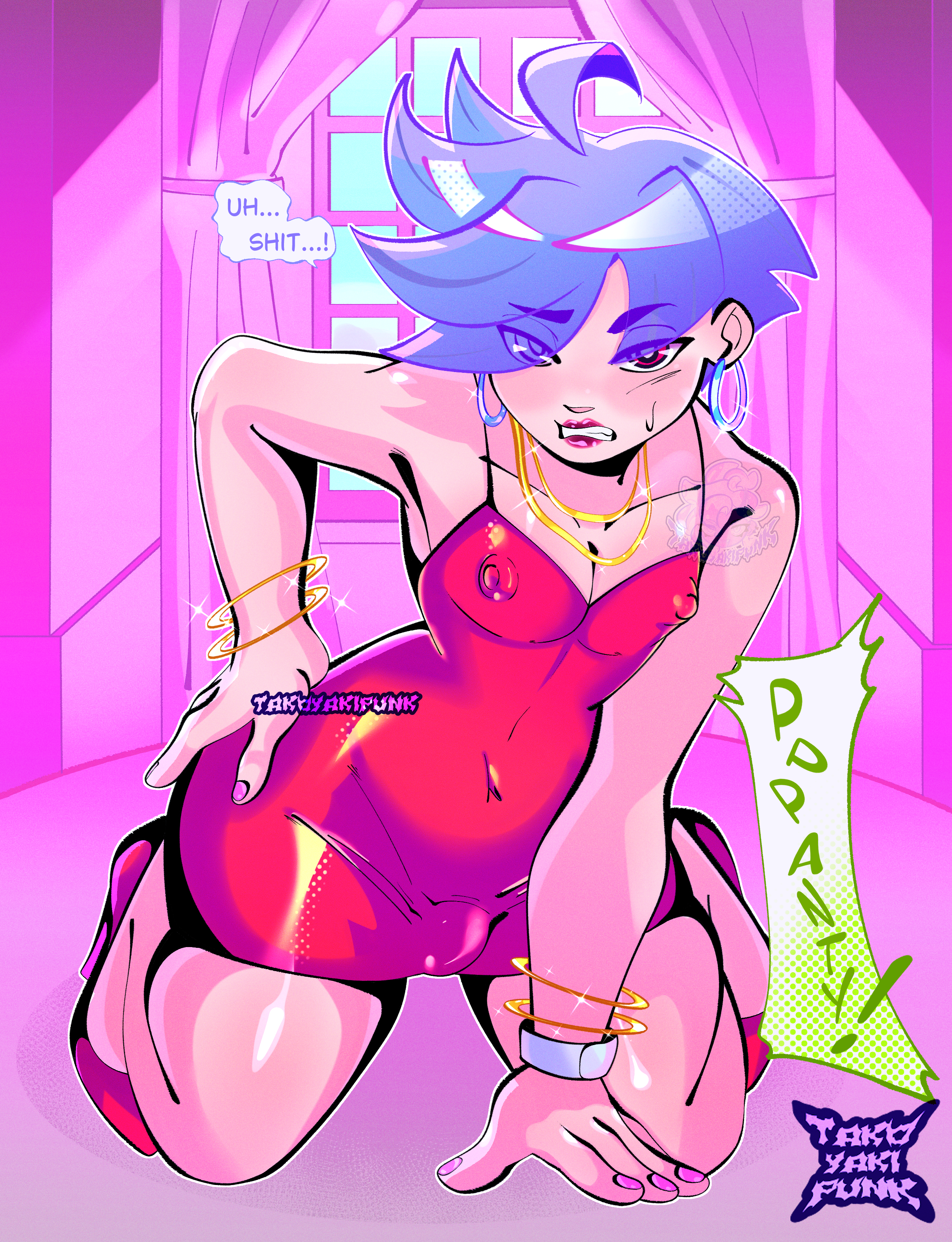misaki (blue archive), misaki (swimsuit) (blue archive), blue archive, absurdres, highres, translation request, 1girl, barbell piercing, censored, convenient censoring, ear piercing, game screenshot inset, halo, industrial piercing, inset, kayokolove3 17, official alternate costume, piercing, pinstripe pattern, pinstripe shirt, red halo, shirt, solo, striped clothes, striped shirt, vertical-striped clothes, vertical-striped shirt