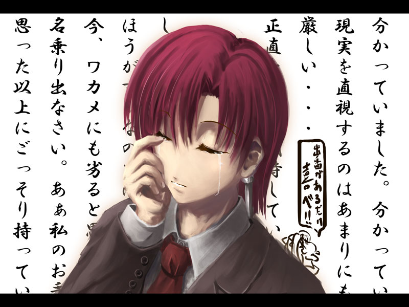 chi119, himeno mikoto, himuro hitoshi, kaii shoukougun, official art, 1boy, 1girl, black hair, blush, brown eyes, grey hair, hair ornament, hair ribbon, japanese clothes, kimono, long hair, obi, print kimono, red eyes, ribbon, sash, short hair, yukata