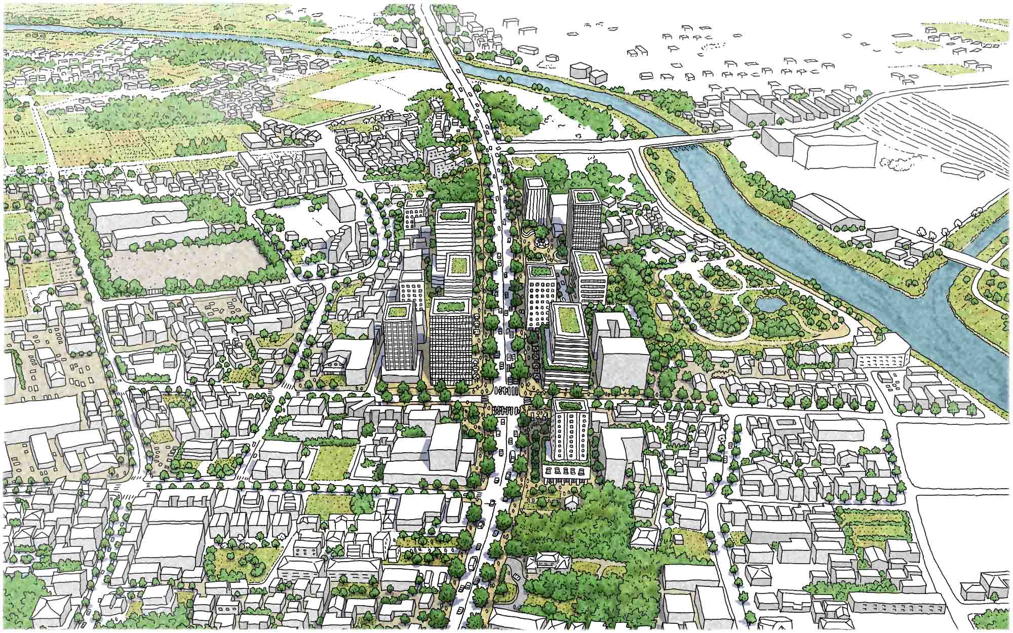 6+othersbox truckbridgebuildingcarcitycityscapecrosswalkfrom aboveguchokipersmotor vehiclemultiple othersparkriverspot colortreetruck