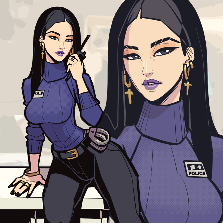 1girlblack hairblack nailsblack pantsblue sweaterbreastscrosscross earringsearringsholdingholding walkie-talkiehorror in hongdaejewelrylong hairlooking at viewermedium breastsmultiple viewspantspurple lipsribbed sweatersweaterturtleneckturtleneck sweaterwalkie-talkie