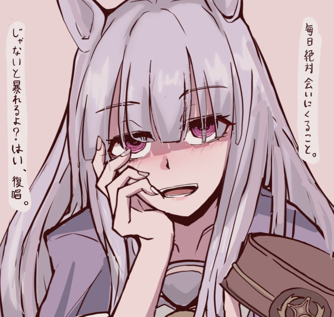 daikokutei bunko, odaibako, uchi no shisho wa shippo ga nai, highres, 1girl, blush, condensed milk, drinking, from side, hands up, japanese clothes, kimono, pouring, pouring onto self, purple eyes, purple hair, purple kimono, request inset, sexually suggestive, shisho fox, short hair, solo, tongue, tongue out, tube