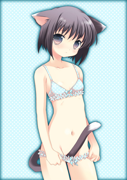 ryu (ryu's form site), 1girl, blush, breasts, brown eyes, brown hair, earrings, female focus, flat chest, goth fashion, hair intakes, hair ornament, hairclip, jewelry, necklace, nipples, nude, short hair, simple background, small breasts, solo, white background