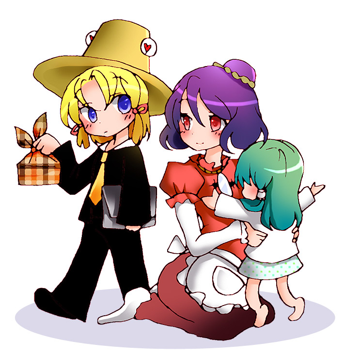 shiku, ahiru (princess tutu), fakir (princess tutu), princess tutu, bad id, bad pixiv id, 00s, ahoge, black hair, blue eyes, blush, holding hands, long hair, orange hair, school uniform