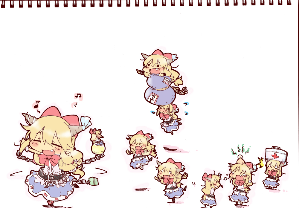 1boy6+girlschainchibicloneclosed eyesfangfemale focusfirst aid kitgourdhead bumpjumpingmini personminigirlmultiple girlsmusical noteno eyeso ooutstretched armsspinningspread armstears