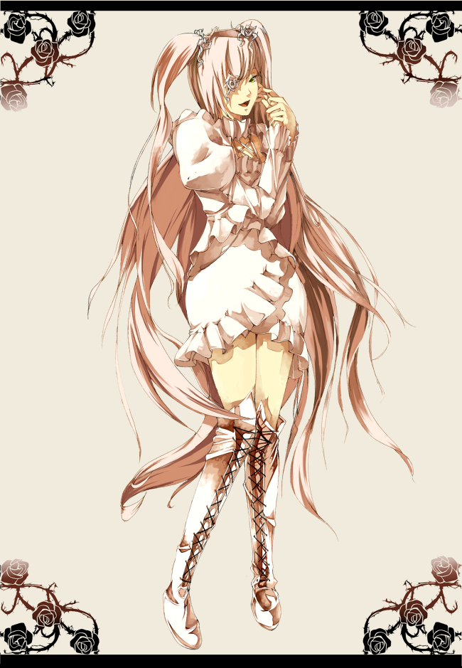 graf eisen, vita (nanoha), lyrical nanoha, mahou shoujo lyrical nanoha, 00s, 1girl, alternate weapon, blue eyes, braid, dress, female focus, gloves, hammer, hat, long hair, red hair, simple background, smirk, solo, weapon