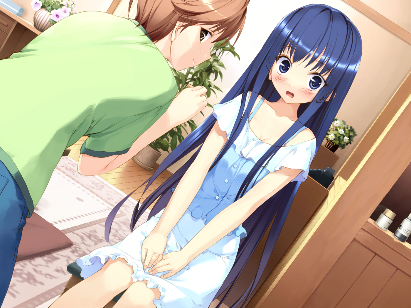 kakmxxxny06, inoue takina, nishikigi chisato, lycoris recoil, highres, 2girls, bag, bare shoulders, black hair, blonde hair, blue dress, blue sky, blush, breasts, closed eyes, closed mouth, cloud, collarbone, crop top, dress, flower, hair flower, hair ornament, long hair, looking at viewer, multiple girls, open mouth, outdoors, palm leaf, palm tree, pool, poolside, purple eyes, red shirt, red skirt, shirt, short hair, shoulder bag, skirt, sky, smile, sundress, teeth, tree, water