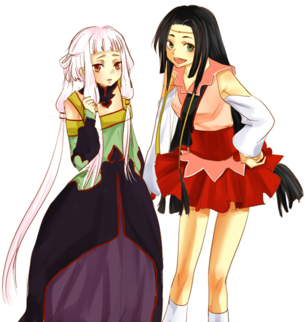 park ongjol, supergirl, absurdres, highres, 2girls, blonde hair, blue eyes, bodysuit, cape, dark skin, drunk, flying, multiple girls, open mouth, red skirt, skirt, superhero costume, tomboy, white dog
