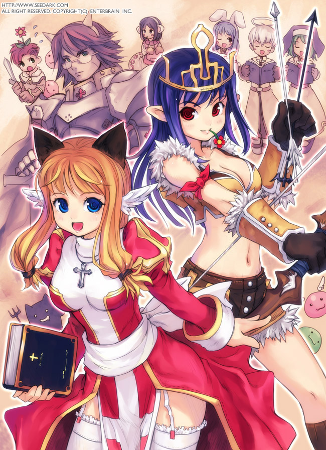 3boys5girlsanimal earsarmorarrow (projectile)blonde hairblue eyesblue hairbookbow (weapon)breastscleavagecrop topcrossdressflowergarter strapsglassesglovesgreen hairhalohead wingshigh priestessjewelrylarge breastsloinclothlong hairmedium breastsmidriffmouth holdmultiple boysmultiple girlsnavelnecklaceobject on headone eye closedpaladinpink hairpointy earspurple hairrabbit earsred eyesshortsswordthighhighswatermarkweaponweb addresswhite hairwhite thighhighswingswinkzettai ryouiki