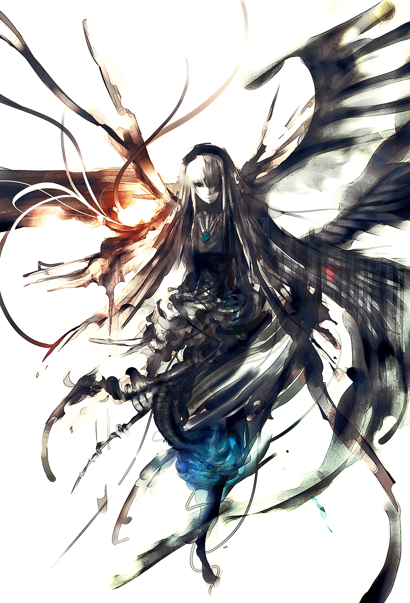 sarutori, jungle crow (kemono friends), kemono friends, 1girl, bird girl, bird wings, black bodysuit, black gloves, black hair, black neckerchief, black shirt, blue eyes, blush, bodysuit, elbow gloves, gloves, hair over one eye, head wings, looking at viewer, neckerchief, reaching, reaching towards viewer, sailor collar, school uniform, serafuku, shirt, short hair, short sleeves, solo, t-shirt, wings