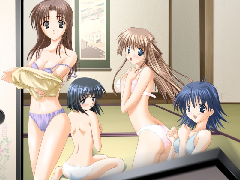 coro fae, dullahan (alekey art), ecjhonny89, kagironsfw, roswell ss, basori tiara, komari chika, shikiya yumeko, yakishio lemon, yanami anna, make heroine ga oo sugiru!, absurdres, artist collaboration, commentary, english commentary, highres, 5girls, ;d, arms behind back, bikini, black hair, black nails, blue eyes, blue hair, blush, breasts, chopsticks, cleavage, closed mouth, dark-skinned female, dark skin, eating, embarrassed, food-themed hair ornament, gluteal fold, grabbing own breast, hair between eyes, hair bun, hair ornament, hair over one eye, holding, holding chopsticks, large breasts, lemon hair ornament, long hair, long hair between eyes, looking at viewer, medium hair, mole, mole on neck, multiple girls, navel, one eye closed, one side up, open mouth, ponytail, purple eyes, red hair, school uniform, short hair, side-tie bikini bottom, small breasts, smile, stomach, swimsuit, tan, tanline, white background, white bikini, yakisoba, yellow eyes