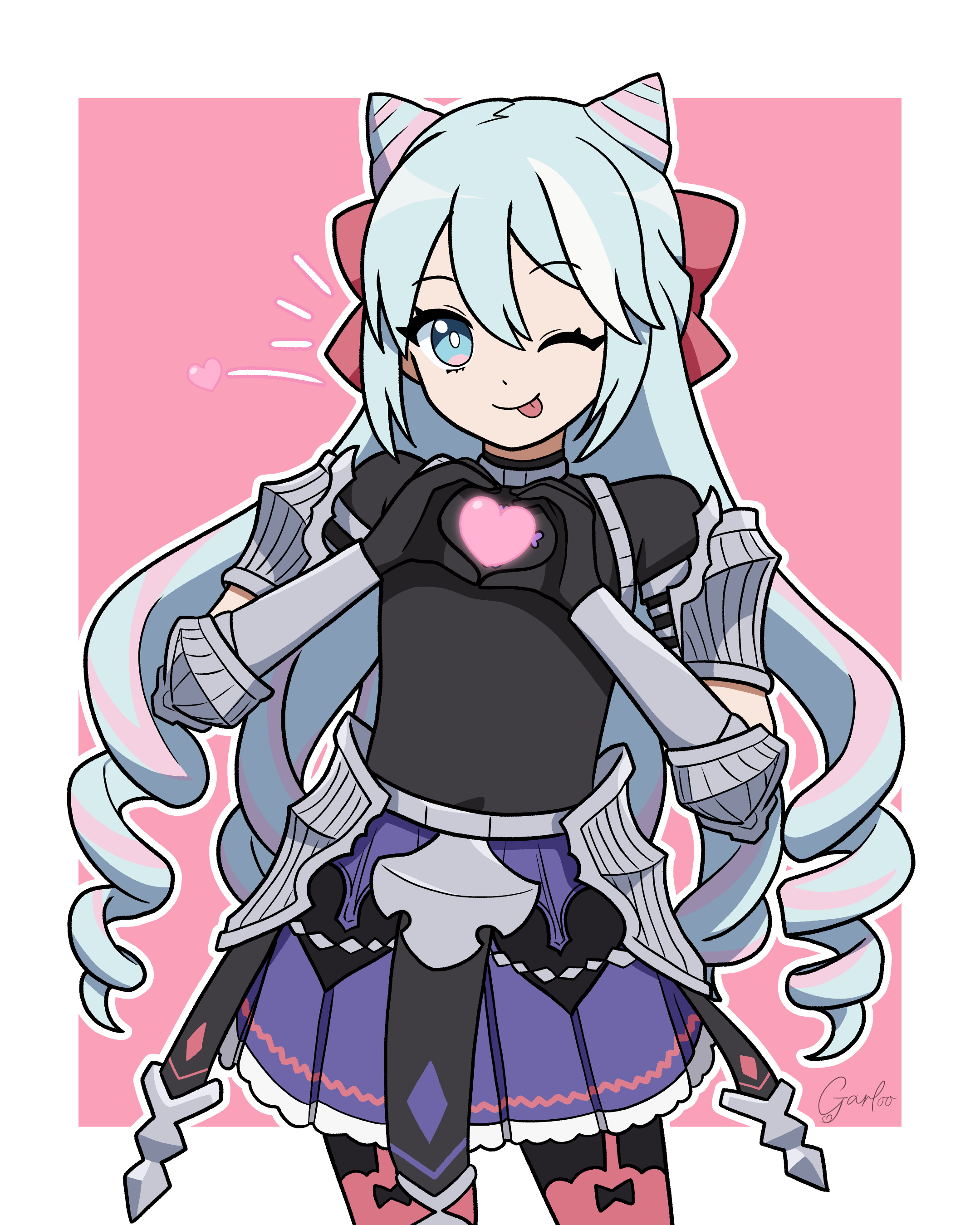 lunaraven, priest (ragnarok online), ragnarok online, commentary request, 1girl, ass, blush, breasts, closed mouth, dress, full body, garter straps, grey thighhighs, hair ornament, handkerchief, handkerchief biting, heart, heart hair ornament, holding, holding staff, juliet sleeves, long sleeves, looking at viewer, looking to the side, medium breasts, medium hair, no shoes, pink hair, puffy sleeves, purple dress, red eyes, side slit, simple background, solo, staff, thighhighs, yellow background