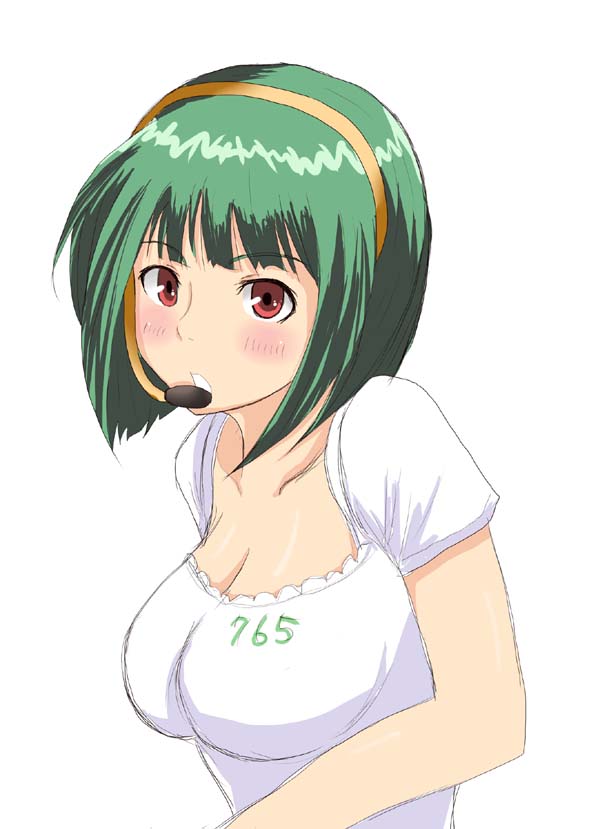 yakumo yukari, touhou, highres, 1girl, blonde hair, blush, dress, female focus, frills, from above, green eyes, hat, hat ribbon, long hair, mob cap, red ribbon, ribbon, solo, tabard, upper body, white dress