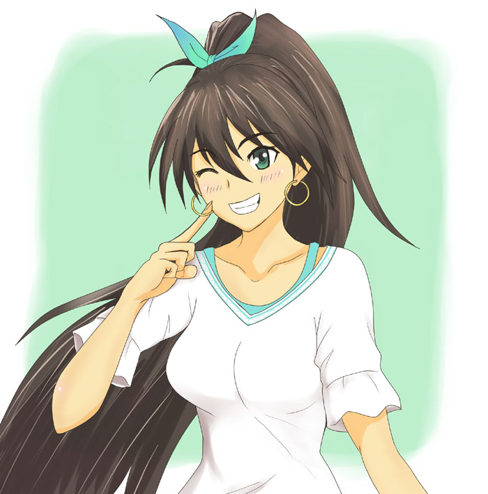 00s1girlbreastsearringsfemale focusgradient backgroundhoop earringsjewelryone eye closedponytailsmilesolowink