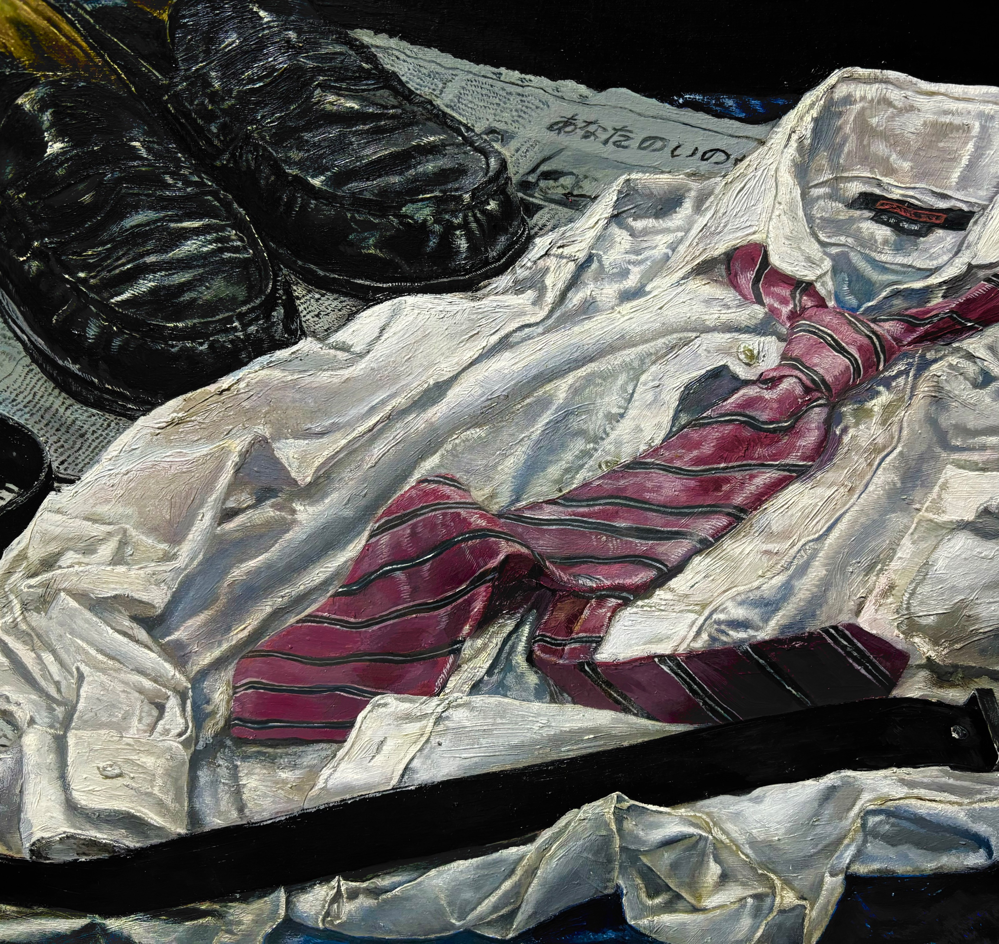 aotsuki eito, sumino takumi, the hundred line -last defense academy-, chinese commentary, commentary request, highres, variant set, 2boys, ahoge, black streaks, blue eyes, broken mirror, different reflection, glasses, grey hair, grey jacket, grin, hand on mirror, hanhanxinghe, hood, hoodie, jacket, jacket over hoodie, looking at mirror, male focus, mirror, multicolored hair, multiple boys, open clothes, open jacket, purple eyes, red hair, reflection, reflection focus, ringed eyes, short hair, smile, streaked hair, white hoodie, white jacket