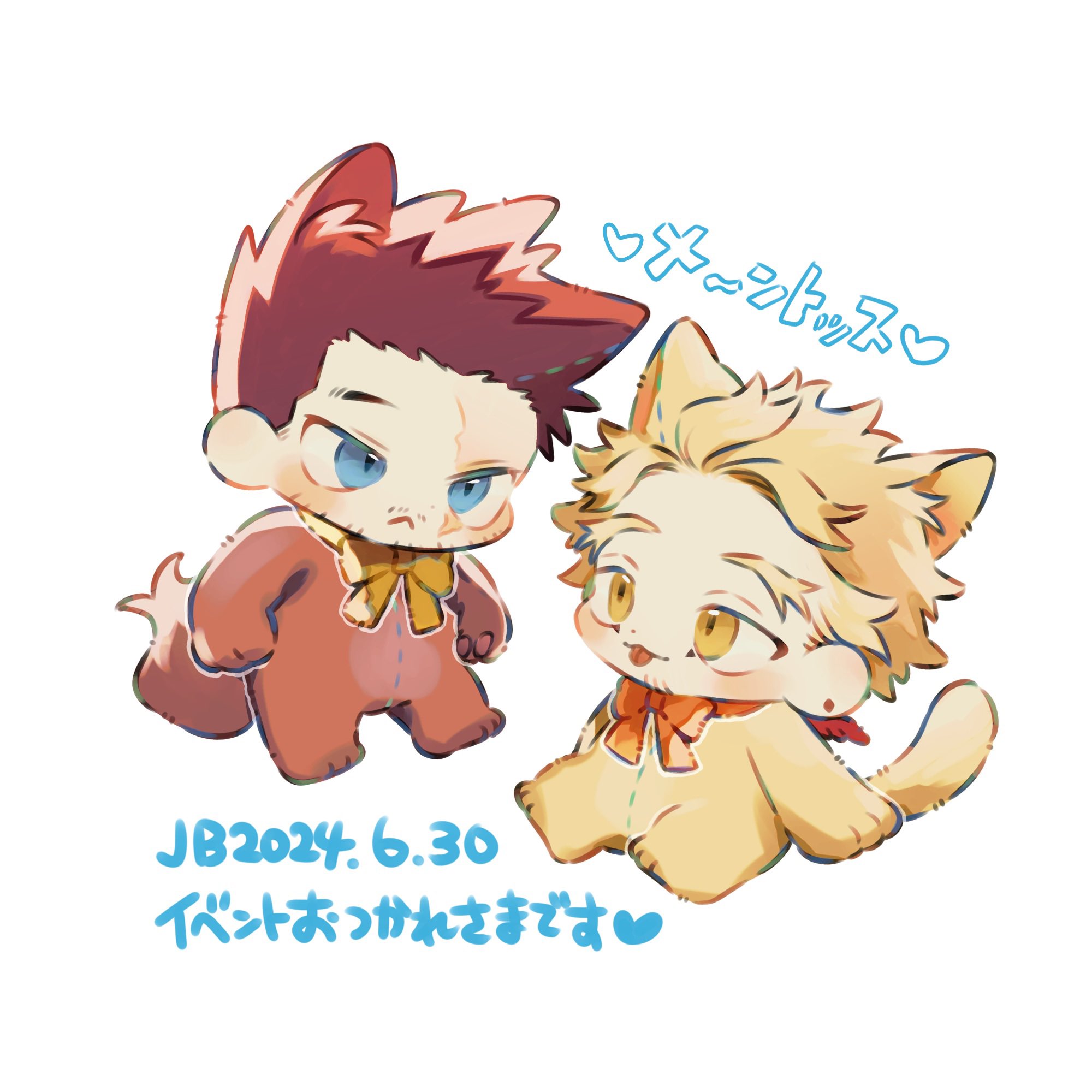 aesc (fate), aesc (savior) (fate), con (fate), habetrot (fate), meltryllis, meltryllis (fate), meltryllis (swimsuit lancer) (fate), meltryllis (swimsuit lancer) (second ascension) (fate), mini nobu (fate), morgan le fay (fate), oda nobunaga (fate), fate/grand order, fate (series), commentary request, highres, 1boy, 5girls, black hair, black ribbon, blonde hair, blue eyes, blue flower, closed eyes, closed mouth, creature, dress, flower, grey hair, grin, hair flower, hair ornament, hair ribbon, hat, kondou isami (fate), long hair, looking at another, multicolored hair, multiple girls, on head, pink eyes, pink hair, pink hat, pointy ears, ponytail, profile, purple hair, red hair, ribbon, shinsengumi, sitting, size difference, smile, swimsuit, tsukikusa ao, twitter username, very long hair, white hair