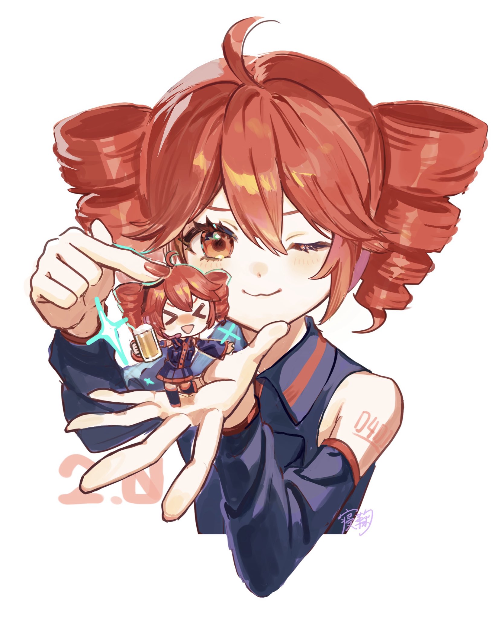 aotsuki eito, sumino takumi, the hundred line -last defense academy-, chinese commentary, commentary request, highres, variant set, 2boys, ahoge, black streaks, blue eyes, broken mirror, different reflection, glasses, grey hair, grey jacket, grin, hand on mirror, hanhanxinghe, hood, hoodie, jacket, jacket over hoodie, looking at mirror, male focus, mirror, multicolored hair, multiple boys, open clothes, open jacket, purple eyes, red hair, reflection, reflection focus, ringed eyes, short hair, smile, streaked hair, white hoodie, white jacket