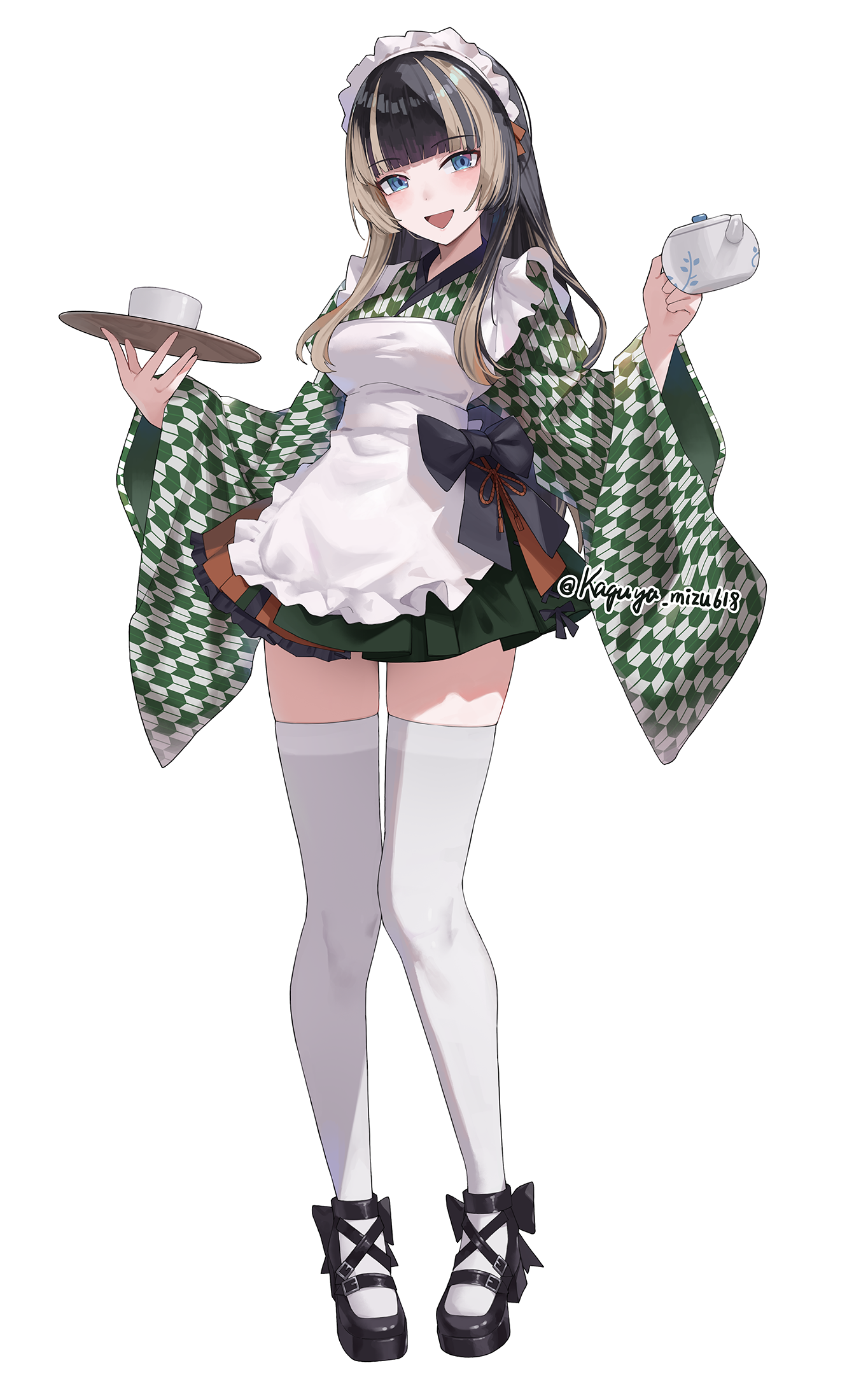 yokota masafumi, bucchigire!, official art, 1boy, anime coloring, black kimono, collarbone, earrings, full body, hand up, holding, holding staff, japanese clothes, jewelry, kimono, long sleeves, looking at viewer, multicolored hair, necklace, open hand, open mouth, pink hair, purple eyes, sandals, sash, short hair, simple background, smile, solo, staff, standing, suzuran (bucchigire!), tareme, thick eyebrows, transparent background, two-tone hair, white hair, wide sleeves, yellow sash, zouri