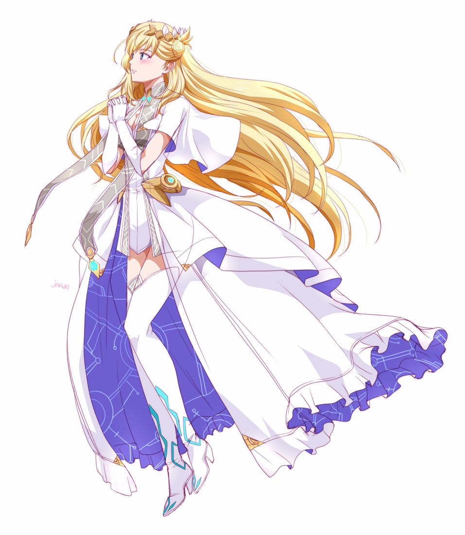 1girlartist nameblonde hairblue eyesbraidbun with braided basedresselbow glovesfloating hairgloveshair bunhigh heelslaurel crownlong hairprayingsimple backgroundsingle hair bunsingle side bunsolowhite backgroundwhite dresswhite gloves