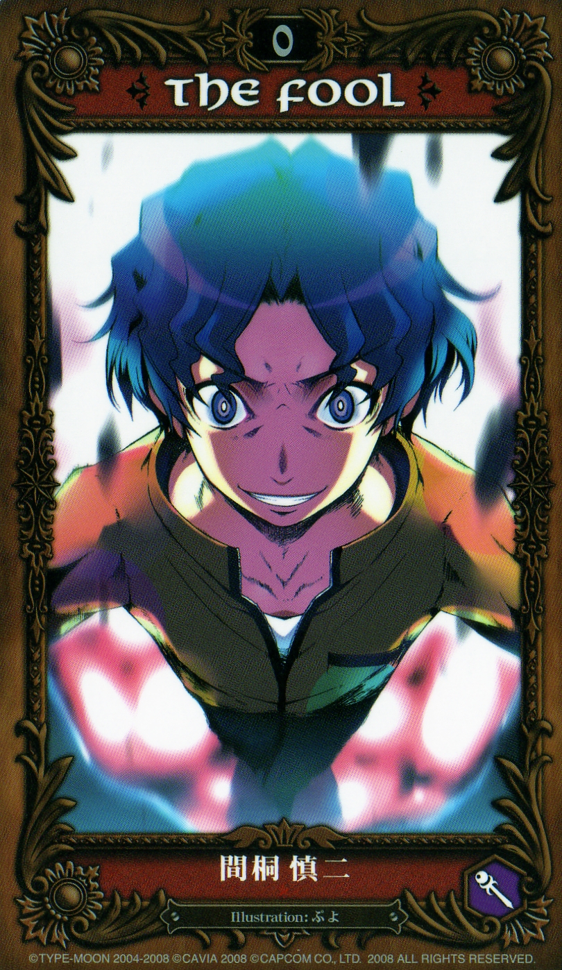 00s1boyblue haircard (medium)grinmale focusshort hairsmilesolotarottarot (medium)the fool (tarot)wavy hair