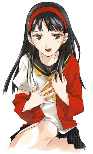 black eyesblack hairblunt bangslong hairschool uniformserafukusimple backgroundsoloundressingwhite background