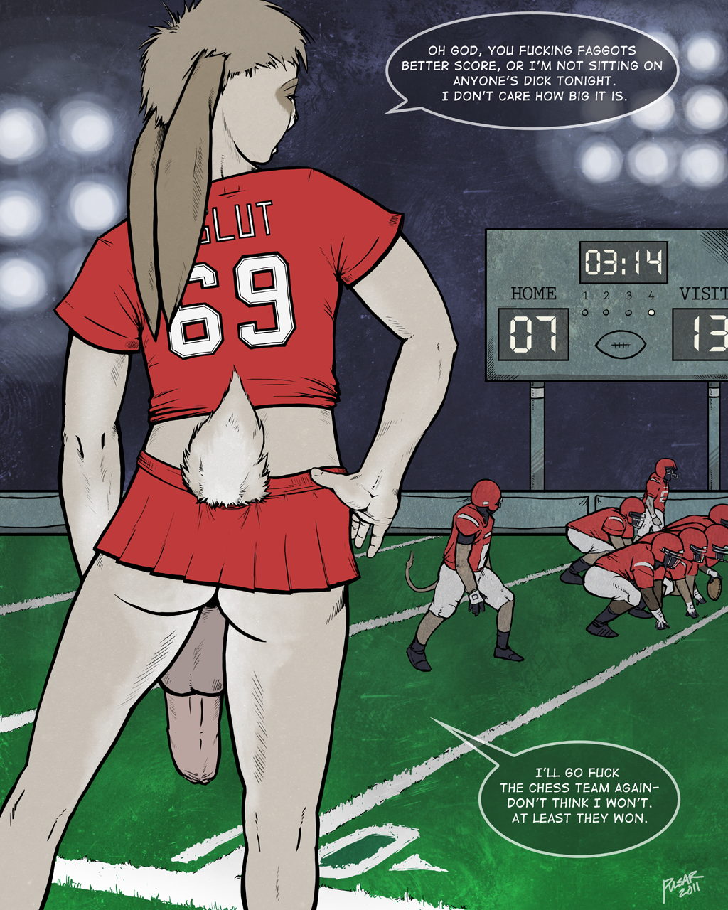 anthroassballsbig peniscrossdressingFlag for Deletionfootballfootball fieldfurfurrygayhairhalf-erectlagomorphmaleminiskirtno humanspenisrabbitshort skirtskirtsolo focustailuncut