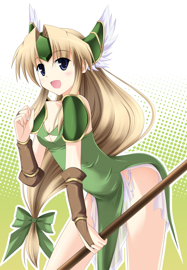 1girlbent overblonde hairblushbowdressfemale focusgreen bowgreen dresshair bowloinclothlong hairlooking at viewerlow-tied long hairsolotaremevery long hair
