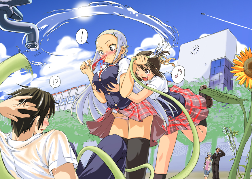 1boy2boys3girlsaircraftairplanebloodblushbreastsbreasts squeezed togetherbrown hairclouddayfangflowergrabbing another's breastgropinghosekneehighslarge breastslong hairmultiple boysmultiple girlsnosebleedone eye closedoutdoorspantiesschoolschool uniformshort hairskysocksthighhighsunderwearupskirtwaterwhite pantieswink