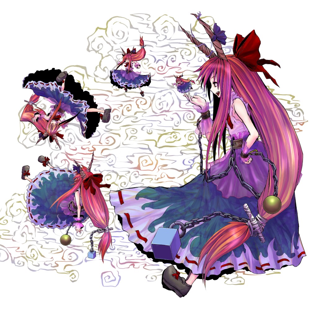 1girl5girlschainclonefemale focusfull bodyhornslong hairmultiple girlsmultiple viewsribbonwhite background