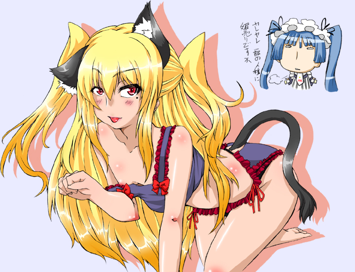 kajishima masaki, kuramitsu mihoshi, makibi kiyone, masaki aeka jurai, masaki sasami jurai, ryouko (tenchi muyou!), tenchi muyou!, tenchi muyou! uchuu hen, 1990s (style), 5girls, ass, bikini, blonde hair, blue eyes, blue hair, character name, dark-skinned female, dark skin, facial mark, forehead mark, freckles, frilled bikini, frills, midriff, multiple girls, one-piece swimsuit, pink eyes, purple hair, retro artstyle, spiked hair, swimsuit, twintails, yellow eyes