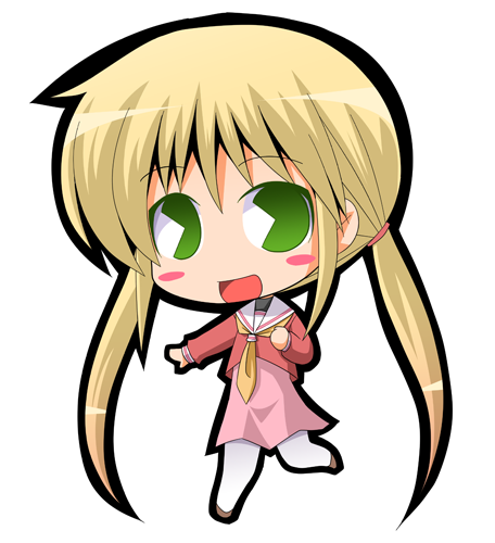 00sblonde hairblouseblushchibigreen eyeslong hairneckerchiefpac-man eyespantyhosepink shirtschool uniformserafukushirtsimple backgroundsmilesolotwintailsvery long hairwhite backgroundwhite pantyhoseyellow neckerchief