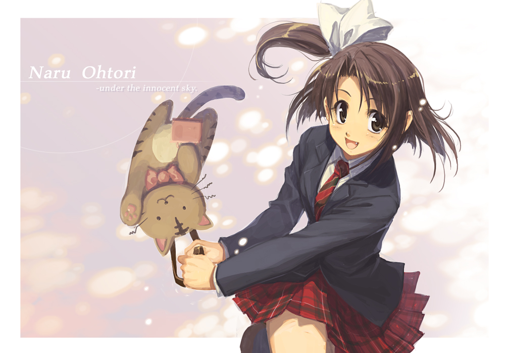 brown eyesbrown hairfangnecktieplaid clothesplaid skirtschool uniformshort hairskirtsolostuffed animalstuffed toy