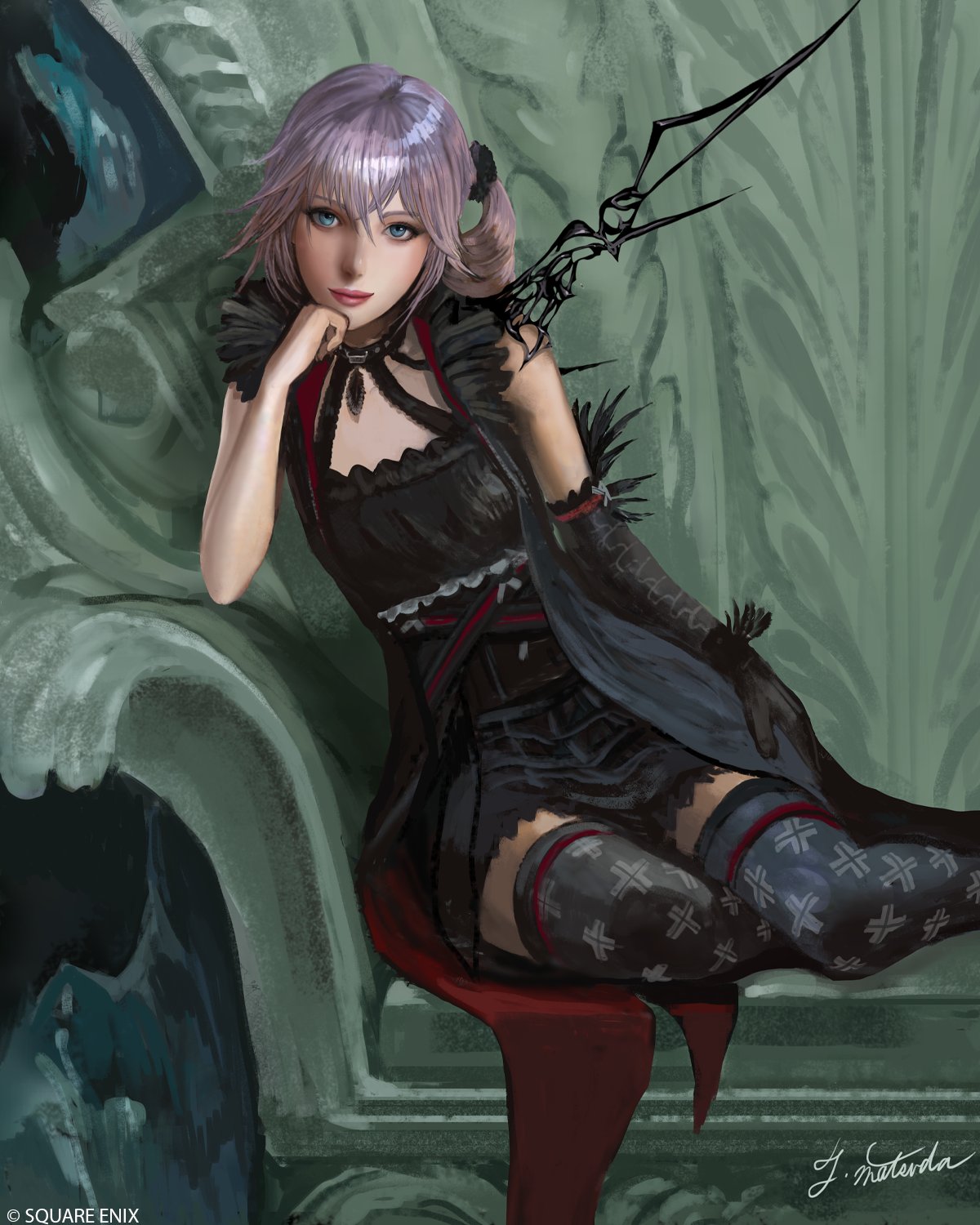 starshadowmagician, infection monitor (arknights), necrass (arknights), reed (arknights), reed the flame shadow (arknights), arknights, artist request, chinese commentary, commentary request, highres, official art, 2girls, :d, black gloves, black shoes, black thighhighs, blonde hair, blue eyes, bracelet, breasts, card, copyright name, dragon, dragon horns, dragon tail, dress, fire, flame-tipped tail, floating hair, flower, gloves, hair flower, hair ornament, hair over one eye, hair spread out, high heels, holding, holding card, horns, jewelry, long hair, looking at another, looking at viewer, multiple girls, official alternate costume, open mouth, purple fire, shoes, siblings, sisters, smile, tail, thighhighs, torn clothes, torn thighhighs, very long hair, white dress, white flower, white hair, white shoes