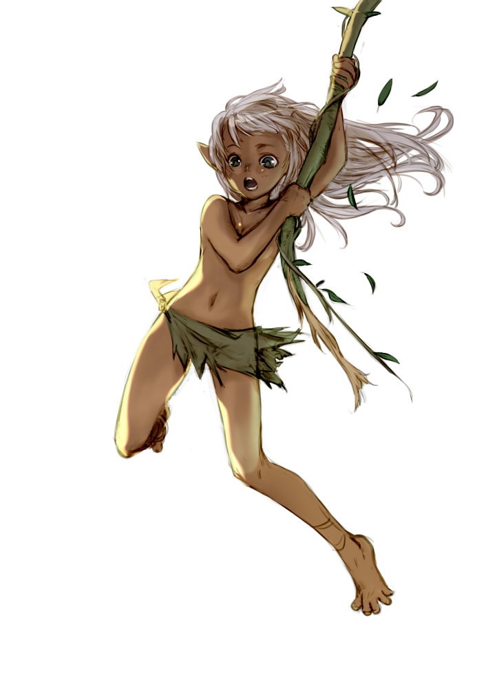 1girlbarefootdark skindark-skinned femaleelffeetfemale focuslolilong hairplantpointy earssolotopless femalevineswhite hair