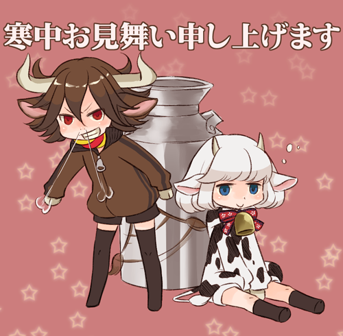 nanao naru, sakura ~setsugekka~, 1girl, ?, blush, dango, dated, dutch angle, eating, female focus, food, full body, japanese clothes, kimono, long hair, no socks, open mouth, sandals, sanshoku dango, skewer, solo, speech bubble, tray, twintails, very long hair, wagashi, zouri
