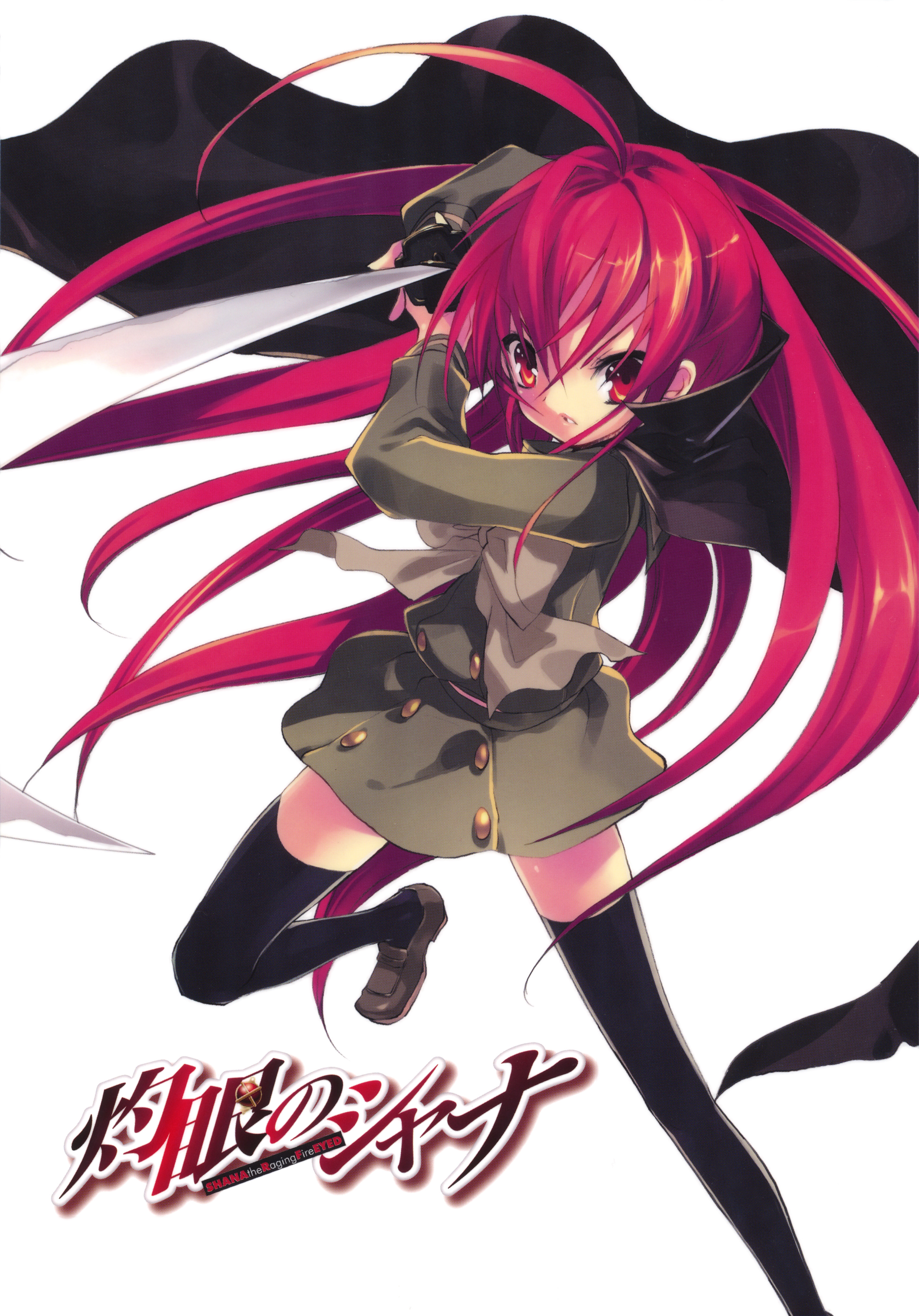 00scapecopyright logologolong hairred eyesred hairschool uniformsoloswordthighhighsweaponzettai ryouiki