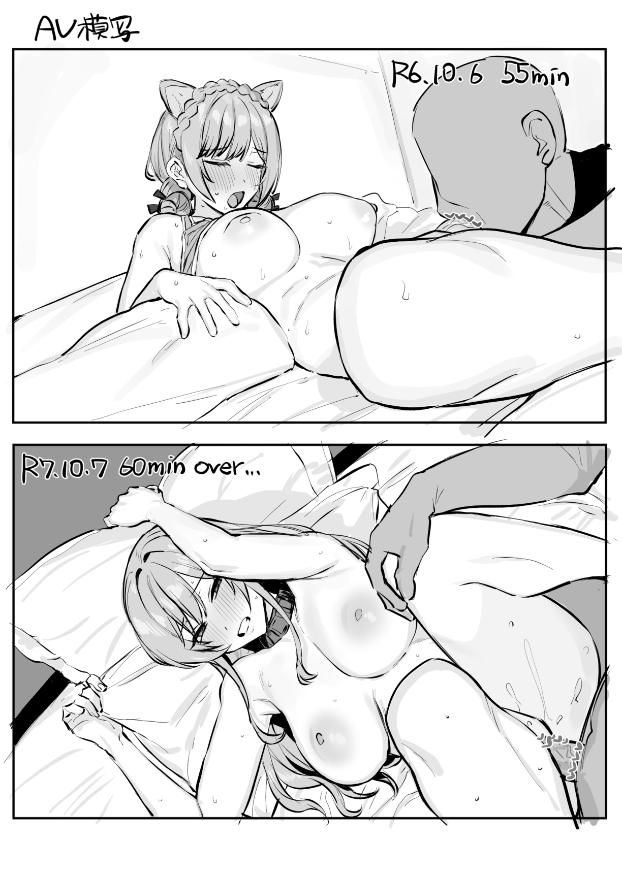 1boy1girlanimal collaranimal earsblushbottomlessbraidbreastsbreasts outcensoredclenched teethclosed eyesclothed sexcollarcompletely nudecrown braidcunnilingusdark skindark-skinned malefacelessfaceless malefeet out of framefrom abovefurrowed browgreyscaleheartheart censorheterokemonomimi modeknees together feet apartlarge breastslong hairlooking at anotherlyingmedium hairmissionarymonochromemultiple viewsnipplesnudeofficial alternate costumeofficial alternate hairstyleon backon bedopen mouthoralpenispillowpillow grabpussypussy juicesexsimple backgroundsolo focussports brasweatteethvaginalvirtual youtuberwhite background