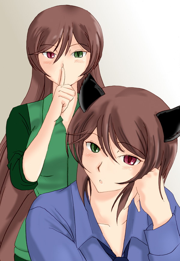 00s2girlsaged upanimal earsbrown haircasualgreen eyesheterochromialong hairmultiple girlsred eyesshort hairsiblingssisterstwinsvery long hair