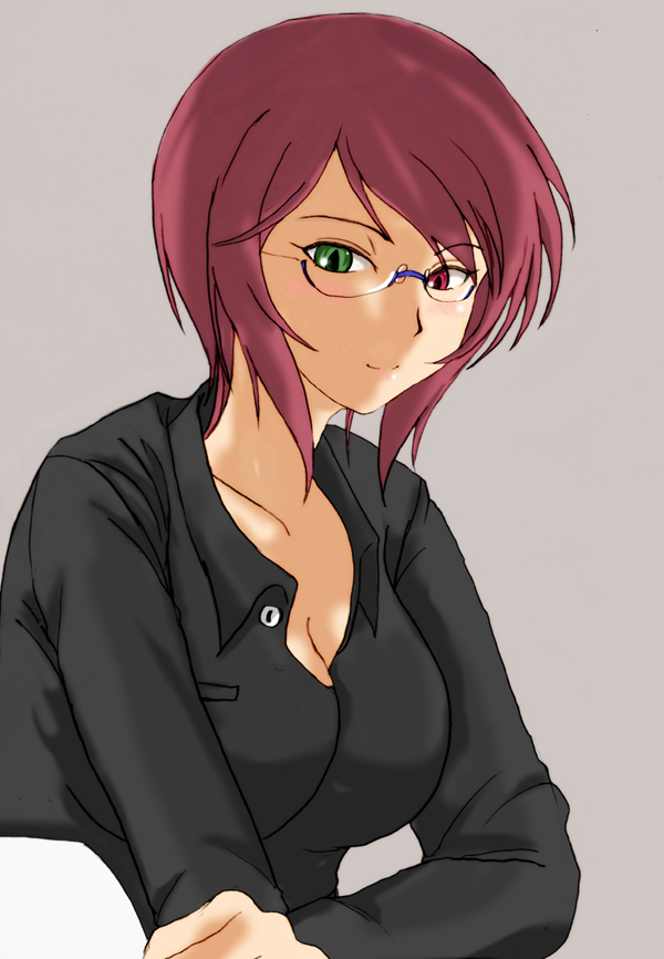 00saged upbespectacledblushbrown haircasualglassesgreen eyesheterochromiared eyesshort hairsolo