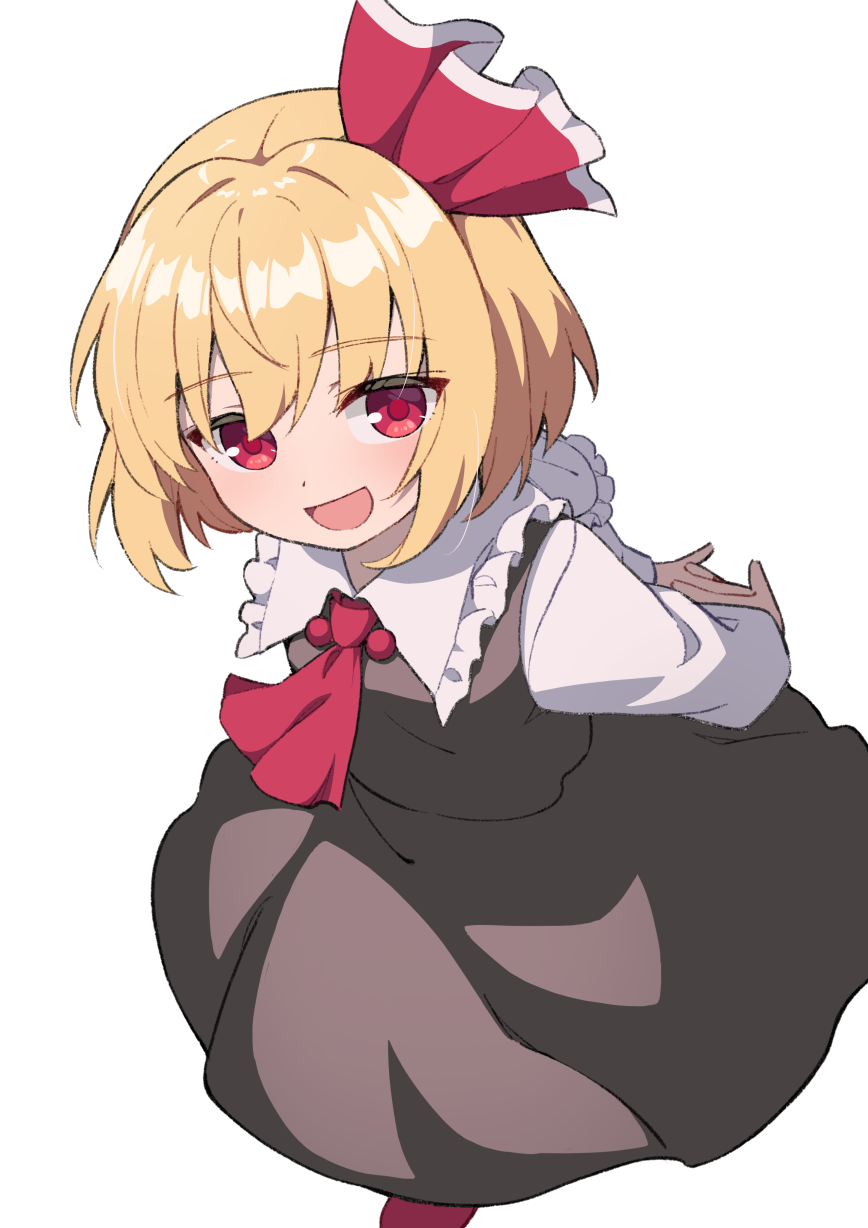 :d1girlarms behind backascotblack skirtblack vestblonde hairblushfrilled sailor collarfrillshair ribboninterlocked fingerslong sleevesopen mouthown hands togetherred ascotred eyesred ribbonred shoesribbonsailor collarshirtshoesshort hairsimple backgroundskirtskirt setsmilesolovestwhite backgroundwhite shirt