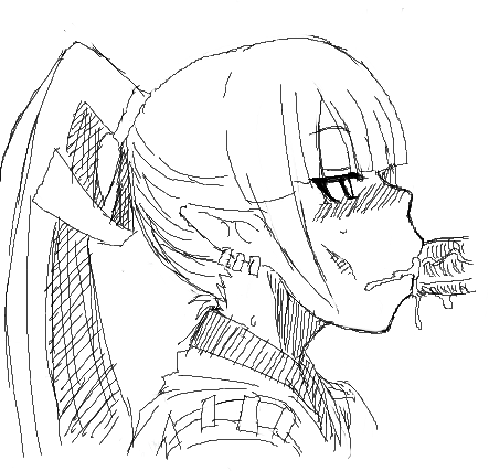 azuma kiyohiko, konno makoto, toki wo kakeru shoujo, 00s, 1girl, angry, black hair, female focus, jumping, kneehighs, open mouth, shirt, shoes, short hair, sketch, skirt, socks, solo, white shirt