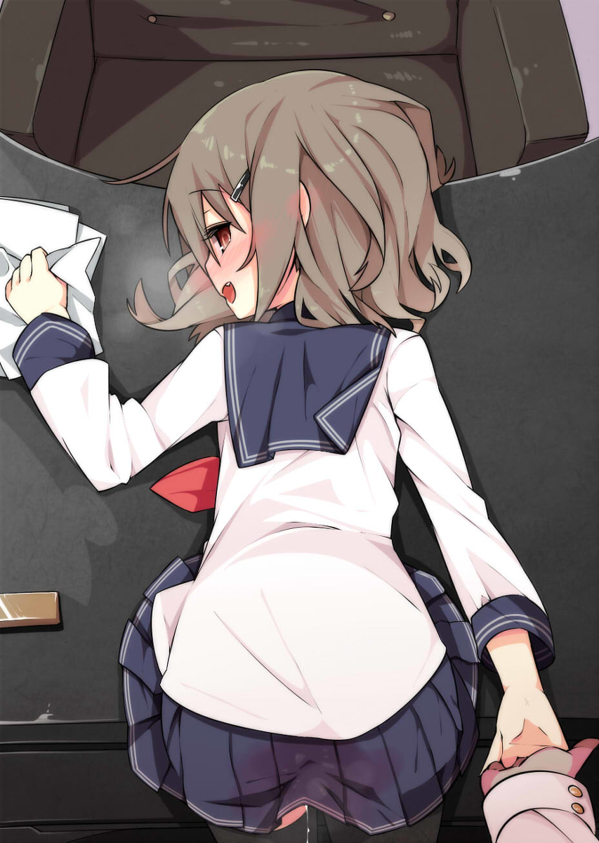 map (blue catty), aizawa tomomi, pia carrot (series), pia carrot e youkoso!!, 1990s (style), 1girl, against wall, blush, bow, brown hair, clothes lift, day, female focus, groin, hair ribbon, long hair, lowleg, lowleg panties, outdoors, panties, panty pull, partially visible vulva, public indecency, purple eyes, retro artstyle, ribbon, skirt, skirt lift, solo, thighhighs, tree, twintails, underwear, very long hair, white panties, white thighhighs