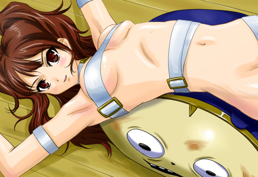 branch (blackrabbits), beastmaster (final fantasy), mithra (ff11), final fantasy, final fantasy xi, fur, bad id, bad pixiv id, 00s, 1girl, blue eyes, brown hair, crab, crustacean, female focus, horns, midriff, short hair, smile, solo