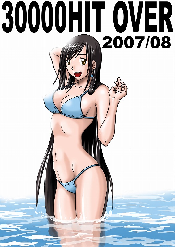 bikiniblack hairlong hairmilestone celebrationsoloswimsuitvery long hairwadingwateryellow eyes