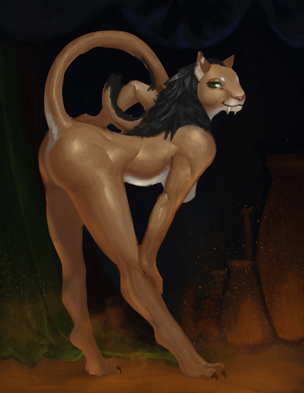 anthroanusassbent overblack hairbreastsbrown clawsbrown furclawsfangsfeatureless breastsfelinefemaleFlag for Deletionfurgreen eyeshairhalf-closed eyeshand on asslong hairmammalnudepink noseraised tailsabertoothsideboobsmilesolotailtoe clawswhite fur