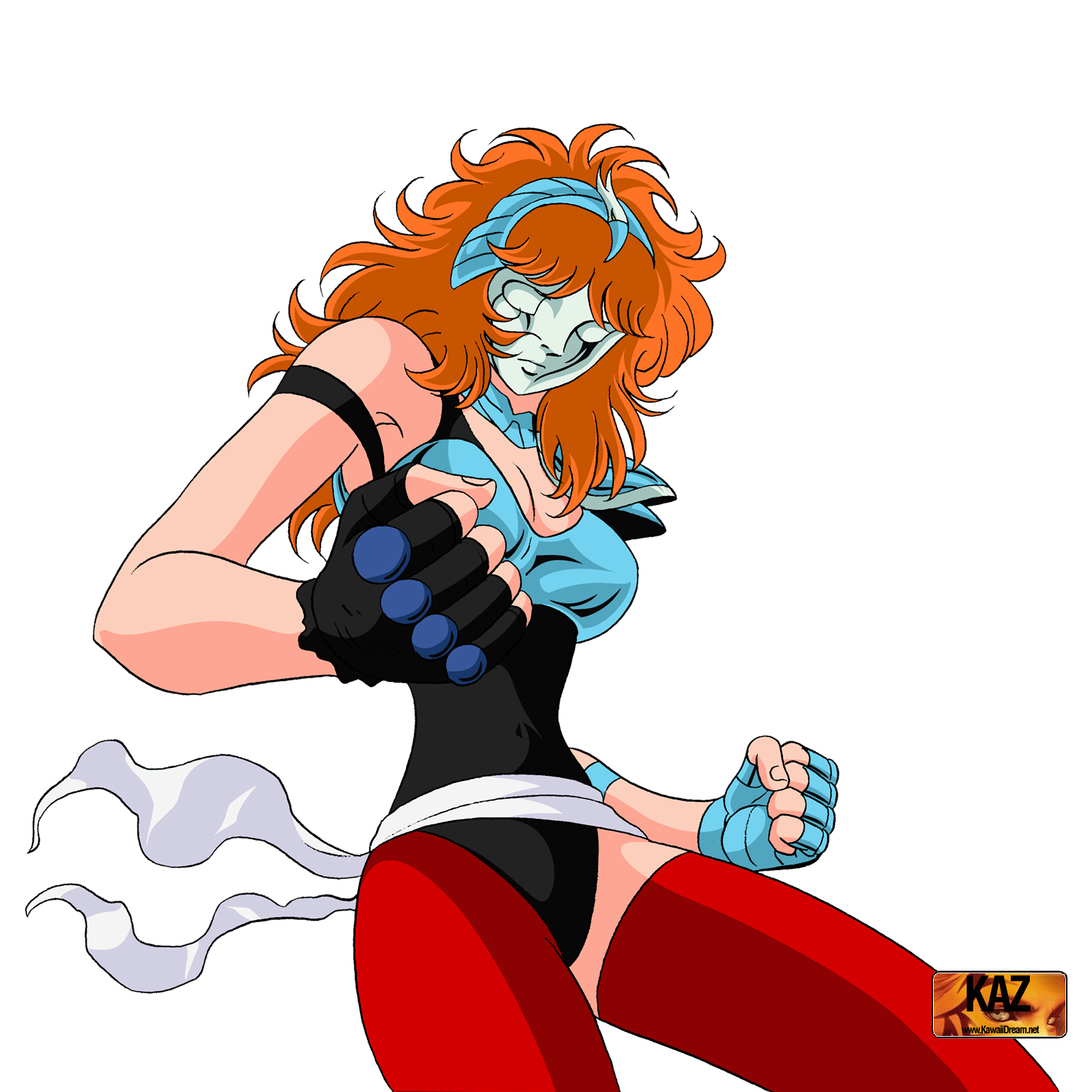 houtengeki, onozuka komachi, m.u.g.e.n, touhou, 1girl, alternate color, blue hair, breasts, cleavage, dark-skinned female, dark skin, dress, female focus, large breasts, red eyes, scythe, short hair, solo, twintails, two side up