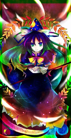 1girlbowtiecolorfulfemale focusgreen eyesgreen hairhatlong hairsolostandingwizard hatyellow bowyellow bowtie