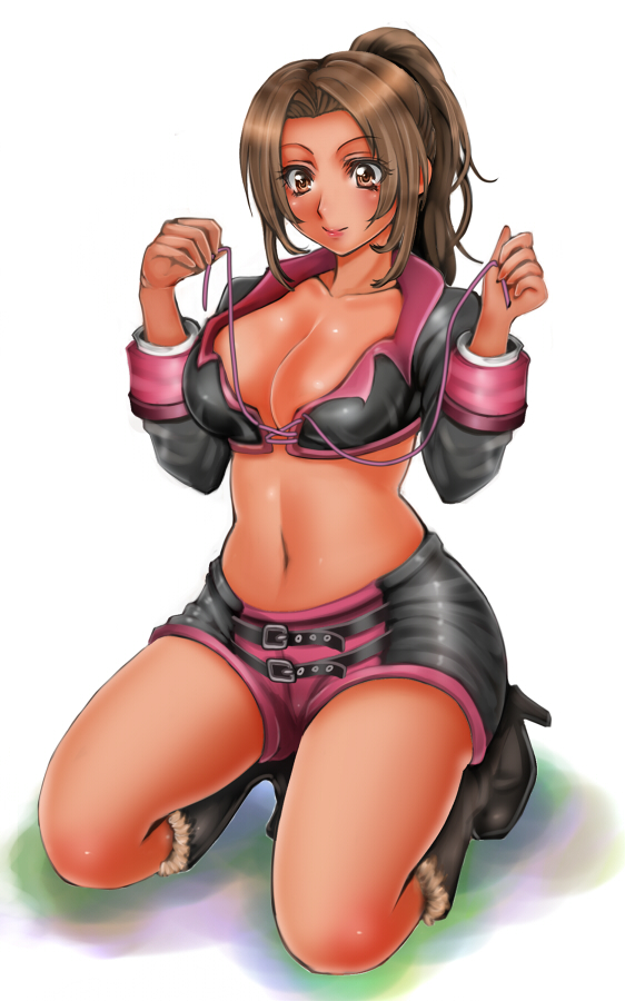 1girlbootsbrazilbreastsbrown eyesbrown haircurvydark skindark-skinned femalefemale focuslarge breastsmidriffnavelshortssmilesolo