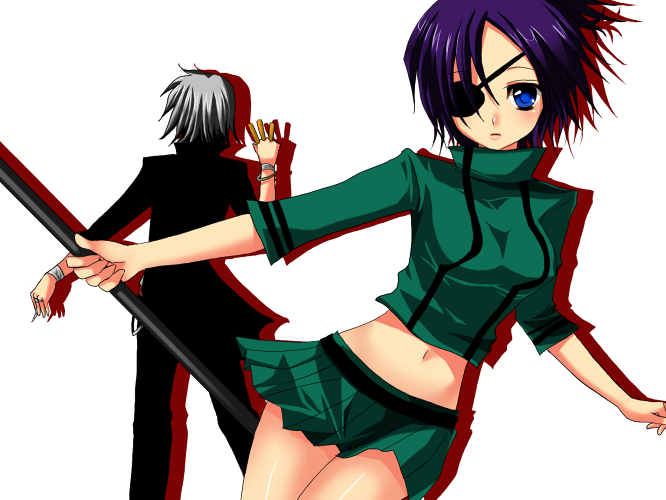 anmo418, andrew graves, ashley graves, the coffin of andy and leyley, chinese commentary, commentary request, highres, 1boy, 1girl, aegyo sal, alternate costume, animal ears, bare shoulders, behind another, black bow, black bowtie, black hair, black jacket, black necktie, blood, blood on cheek, blood on face, bow, bowtie, bracelet, breasts, brother and sister, cat ears, cat girl, chromatic aberration, closed mouth, clothing cutout, collared shirt, double-parted bangs, film grain, frilled shirt, frills, frown, green eyes, hair between eyes, halftone, hand on another's arm, hand on another's shoulder, hands on own chest, hands up, heart, heart-shaped pupils, jacket, jewelry, kemonomimi mode, leaning forward, long sleeves, looking at another, low ponytail, medium hair, necktie, outline, pale skin, pearl bracelet, pink blood, pink brooch, pink eyes, ponytail, ringed eyes, shirt, short hair, short sleeves, shoulder cutout, siblings, small breasts, smile, symbol-shaped pupils, upper body, white outline, white shirt